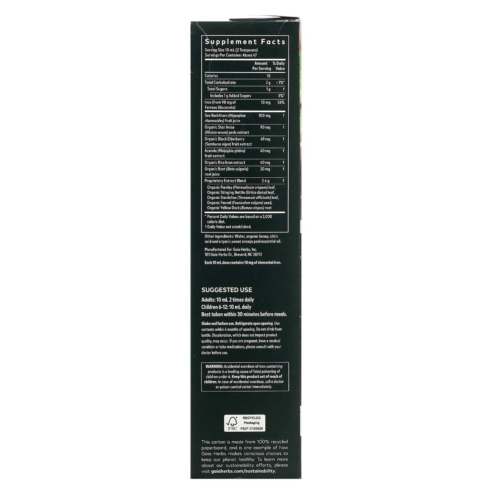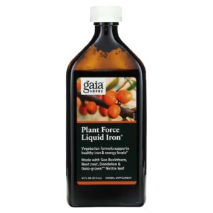 Gaia Herbs Plant Force Liquid Iron® é feito com alimentos nutritivos e vegetais, incluindo raiz de beterraba, dente-de-leão e urtiga Gaia-adulto – ervas tradicionalmente consumidas para ajudar a manter os níveis saudáveis de ferro.