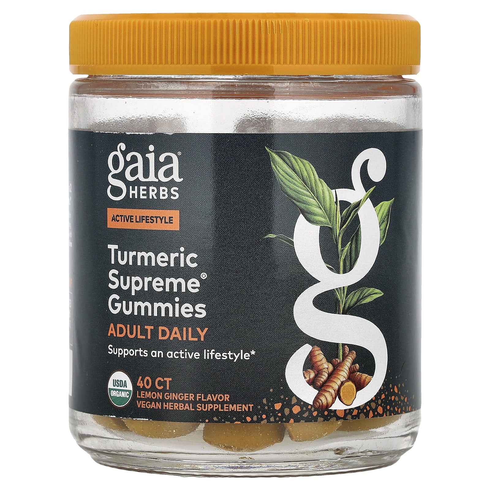 Gaia Herbs Turmeric Supreme® Gomas Diárias para Adultos Limão e Gengibre 40 Gomas – Gaia Herbs Suplementos Antioxidantes Cúrcuma e Curcumina.
