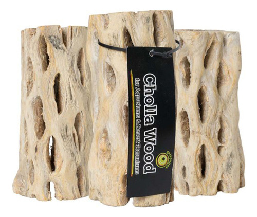 A madeira de Cholla de Galápagos é na verdade um esqueleto de cacto caído do deserto! Sua textura porosa e fibrosa atrai camarões e microfauna aquática. Eles são naturalmente boas âncoras para o cultivo de plantas aquáticas e parecem muito intrigantes debaixo dágua. A madeira de Cholla tem taninos naturais que diminuem o pH aquático de forma gradual e natural! Cholla Wood também é uma decoração clássica de madeira para terrários do deserto que abrigam cobras do deserto, lagartixas, camaleões, dragões e iguanas! Eles até fazem poleiros naturais para todos os pássaros.