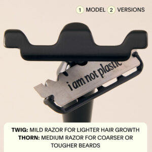 Leaf Shave | Lâmina de barbear Twig, preta — Máquina de barbear totalmente metálica e ecológica para homens e mulheres; inclui 5 lâminas de barbear de aço inoxidável de ponta única; recomendada para barbear o rosto, cabelos mais claros e pele sensível — Uma versão, dois modelos: as lâminas de barbear Leaf Single-Edge estão disponíveis em dois modelos. Eles são quase idênticos, no entanto, o Thorn Razor tem espaço adicional sob a lâmina, permitindo um maior contato com a pele e um barbear ainda mais próximo. O Twig Razor é um barbeador suave mais adequado para cabelos mais claros. O Thorn Razor é um barbeador médio mais adequado para barbas mais grossas ou mais duras – Precision Shaving: The Twig and Thorn Razor apresentam uma cabeça fixa em um ângulo que imita o de um barbeador de cartucho. Ao contrário de um barbeador de segurança tradicional, que usa uma lâmina de dois gumes, o Twig and Thorn apresenta apenas uma única lâmina exposta, permitindo confiança e facilidade ao barbear áreas côncavas e apertadas – Controle máximo: mantenha maior controle do barbear com a alça retropesada da navalha Twig and Thorn – Fácil carregamento da lâmina: substitua com confiança a lâmina da navalha Twig and Thorn pelo Magnetic Load Assist. Abra o porta-lâminas girando a parte inferior do galho e do espinho no sentido anti-horário e use o ímã e os entalhes no porta-lâminas para guiar a lâmina de ponta única até o lugar – Recargas econômicas: não são necessários cartuchos de reposição caros com a navalha Twig and Thorn. Em vez disso, reabasteça seu barbeador com qualquer lâmina de barbear de segurança padrão. Encaixe uma lâmina de barbear de segurança de ponta dupla ao meio ou carregue com lâminas de barbear de segurança de ponta única – Livre de plástico e ecológica: obtenha um barbear sem plástico com maior conforto do que um barbeador de segurança tradicional. As navalhas Twig and Thorn são todas de metal e compatíveis com lâminas de barbear de aço inoxidável. Recicle as lâminas usadas no Leaf Shaves Blade Recycling Tin – Melhor ajuste: o Twig and Thorn Razor é mais adequado para barbear o rosto. Para depilar a cabeça e as pernas, confira o Leaf Razor by Leaf Shave