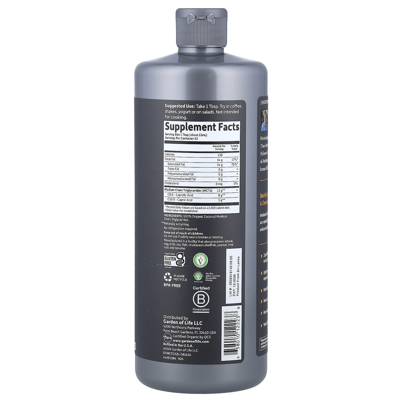 Garden of Life Fórmula do Formulated Saúde Cerebral 100% Óleo TCM de Coco Orgânico Sem Sabor 946 ml (32 fl oz) – Garden of Life Suplementos Controle de peso Óleo de TCM e Ácido Caprílico.
