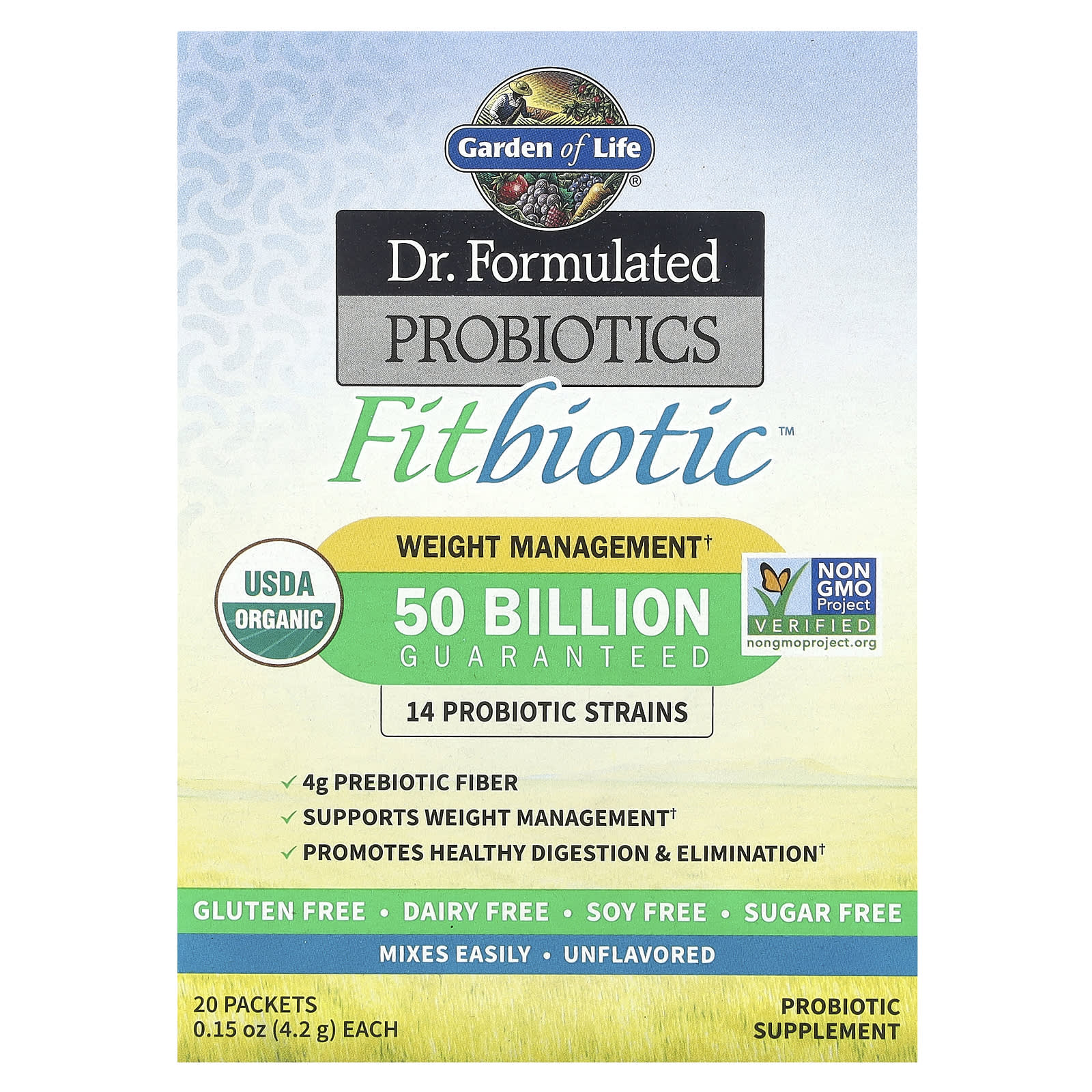 Garden of Life Formulado Probióticos Formulados Fitbiotic™ Sem Sabor 50 Bilhões de UFCs 20 Embalagens 42 g (015 oz) Cada – Garden of Life Suplementos Saúde Intestinal Probióticos.