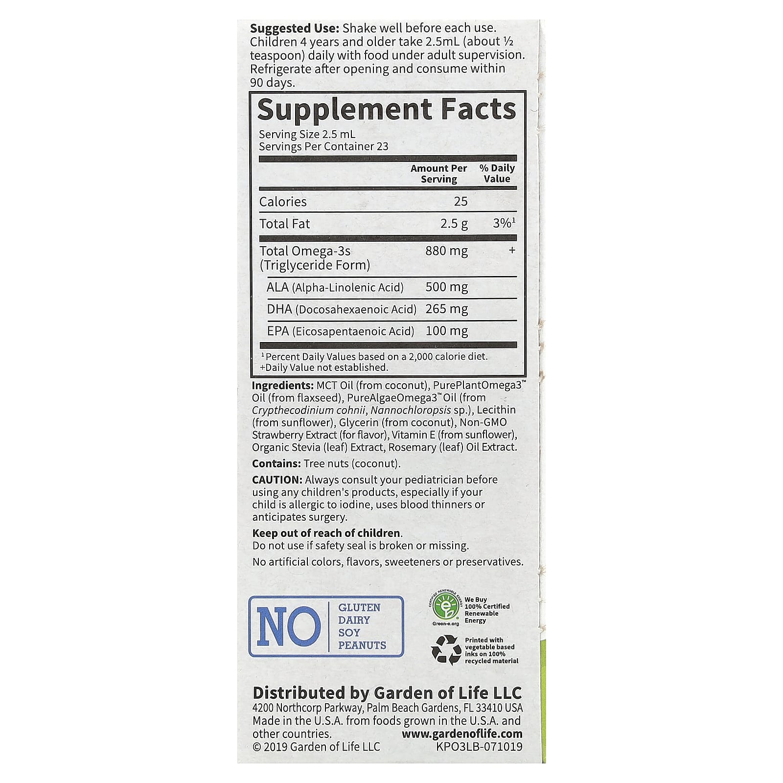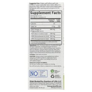 Garden of Life Líquido para Crianças com Ômega-3 Morango 575 ml (2 fl oz) – Garden of Life Bebês e Crianças Saúde Infantil DHA e Ômegas para Bebês.