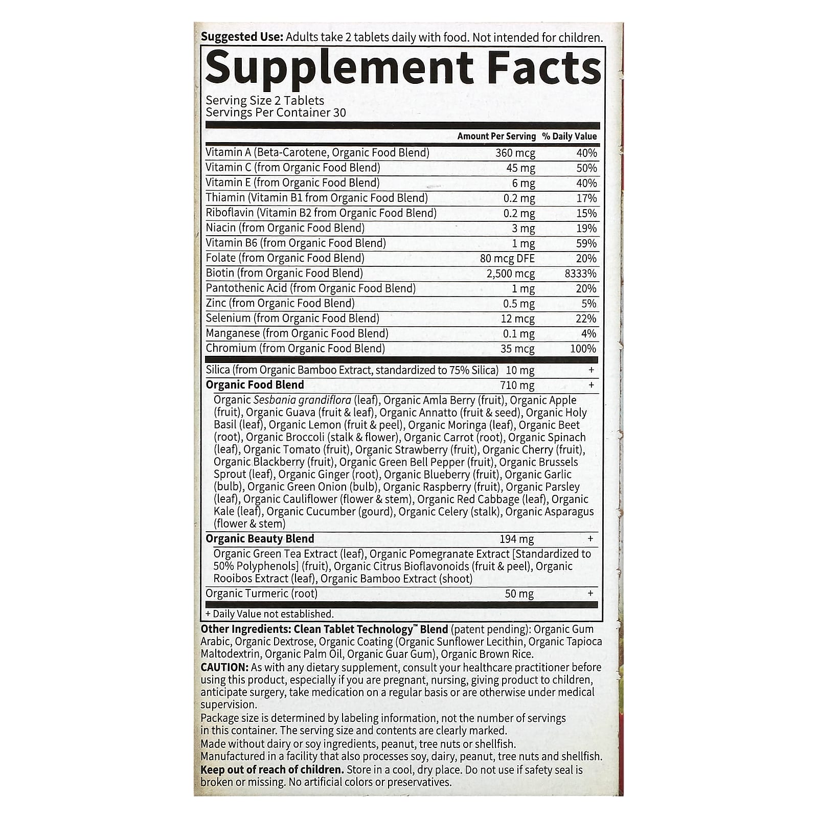 Fórmula de Alimento Integral com Biotina e Dióxido de Silício, certificada organicamente e verificada como não OGM, obtida a partir de alimentos nutritivos e reais.