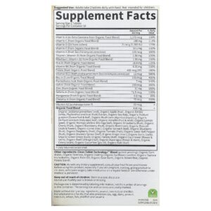 Multivitamínico Integral orgânico certificado, verificado como Não OGM e feito com alimentos reais e nutritivos.