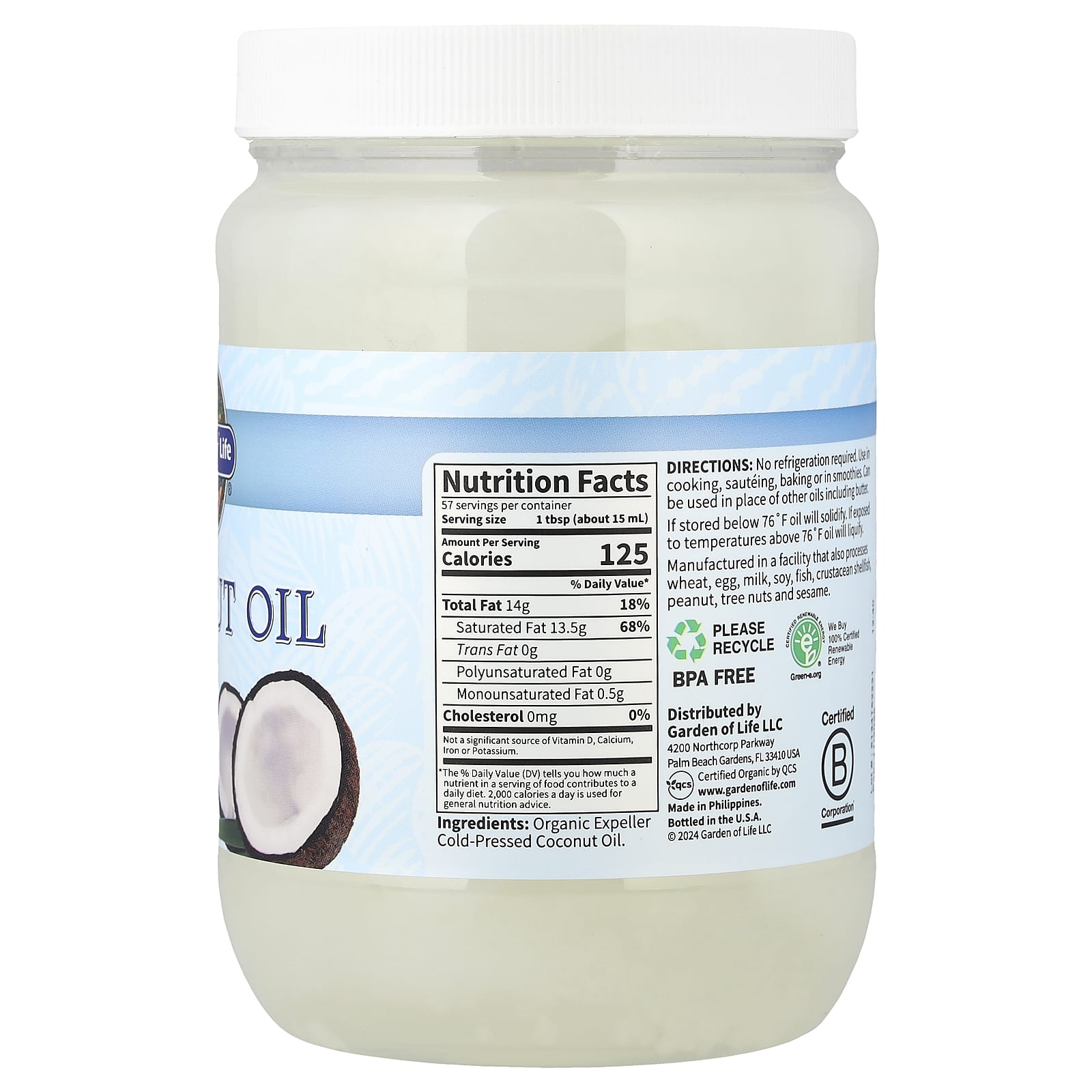 Garden of Life Óleo de Coco Extravirgem Cru 858 ml (29 fl oz) – Garden of Life Alimentos Óleos e vinagres Óleo de Coco.