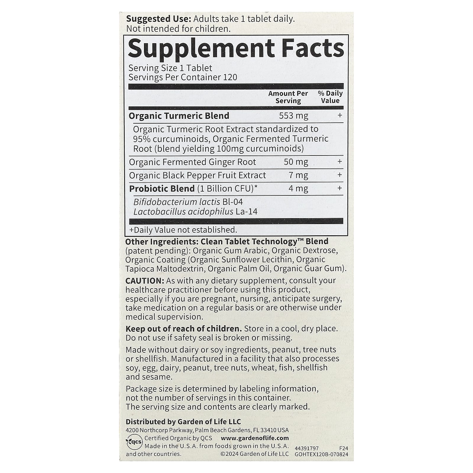 Garden of Life Organics Cúrcuma Resposta Inflamatória 120 Comprimidos Veganos