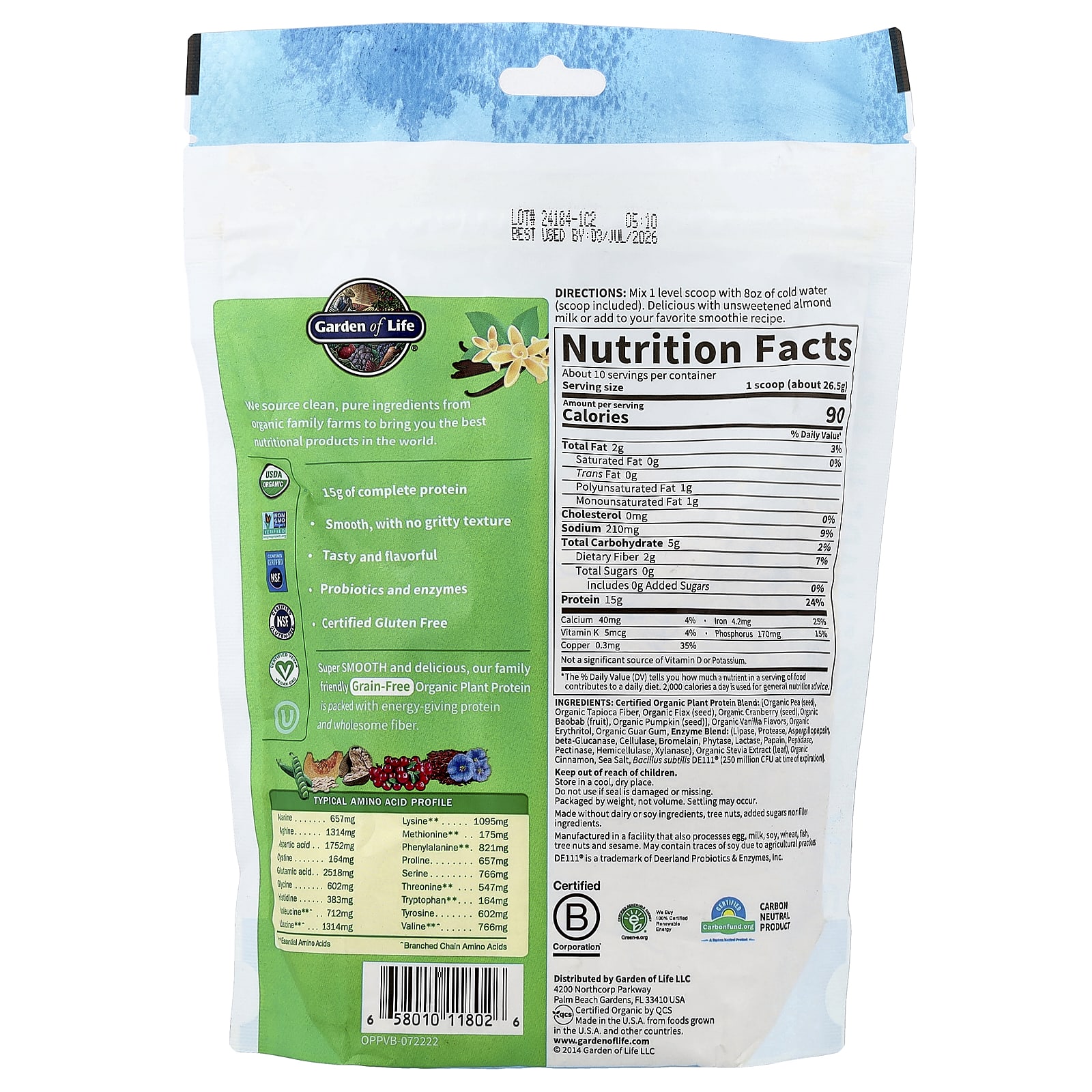 Garden of Life Proteína Vegetal Orgânica Sem Grãos Baunilha Suave 265 g (94 oz) – Garden of Life Nutrição Esportiva Proteína Proteína Vegetal Mistura Proteica à Base de Plantas.