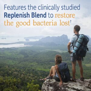 Contém uma Mistura para Reabastecimento para ajudar a repovoar o trato gastrointestinal com bactérias benéficas1