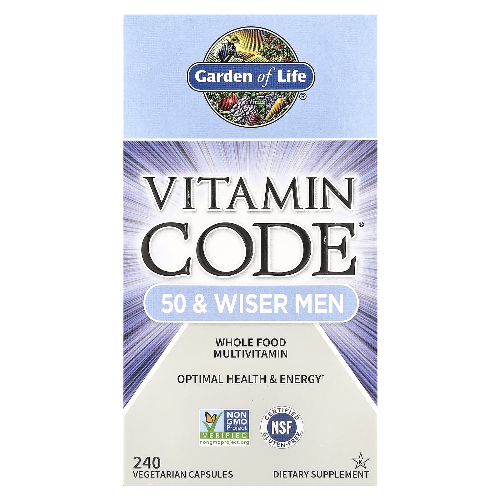 Garden of Life Vitamin Code 50 & Wiser Men Multivitamínico Integral 240 Cápsulas Vegetarianas – Garden of Life Suplementos Saúde do Homem Multivitamínicos Masculinos Vitaminas Multivitamínicos Multivitamínicos para Idosos.