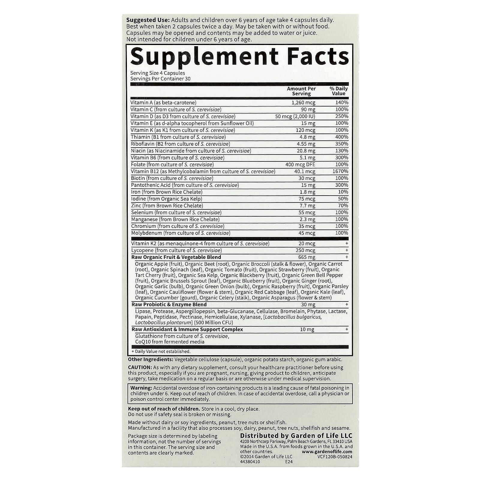 Garden of Life Vitamin Code® Família Multivitamínico Integral 120 Cápsulas Vegetarianas – Garden of Life Suplementos Vitaminas Multivitamínicos.