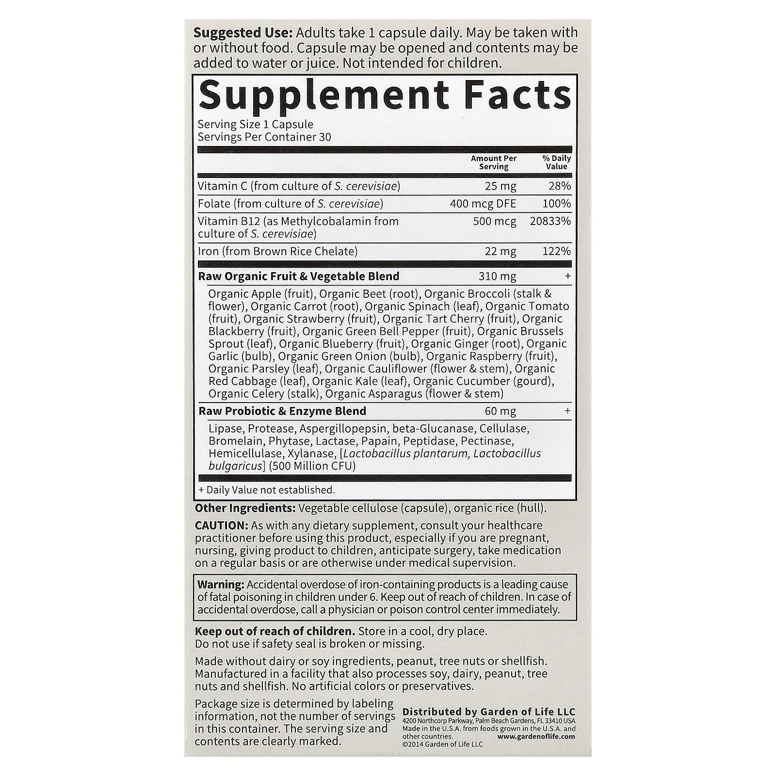 Garden of Life Vitamin Code Ferro RAW 30 Cápsulas Veganas – Garden of Life Suplementos Minerais Ferro.