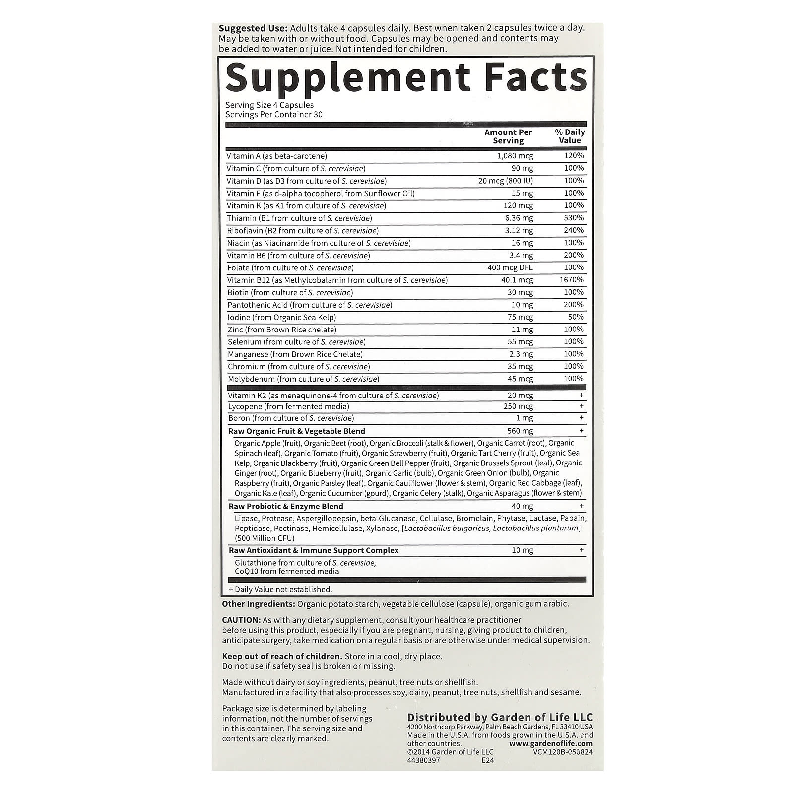 | Mistura de Frutas e Vegetais RAW Orgânicos Maçã Orgânica (fruta), Beterraba Orgânica (raiz), Brócolis Orgânico (talo e flor), Cenoura Orgânica (raiz), Espinafre Orgânico (folha), Tomate Orgânico (fruto), Morango Orgânico (fruta), Cereja Azeda Orgânica (fruta) , Algas Marinhas Orgânicas, Amora Orgânica (fruta), Pimentão Verde Orgânico (fruta), Couve-de-Bruxelas Orgânica (folha), Gengibre Orgânico (raiz), Mirtilo Orgânico (fruta), Alho Orgânico (bulbo), Cebola Verde Orgânica (bulbo) , Framboesa Orgânica (fruta), Salsa Orgânica (folha), Couve-Flor Orgânica (flores e caule), Repolho Vermelho Orgânico (folha), Couve Orgânica (folha), Pepino Orgânico (cabaça), Aipo Orgânico (talo), Espargos Orgânicos (flores e caule) |