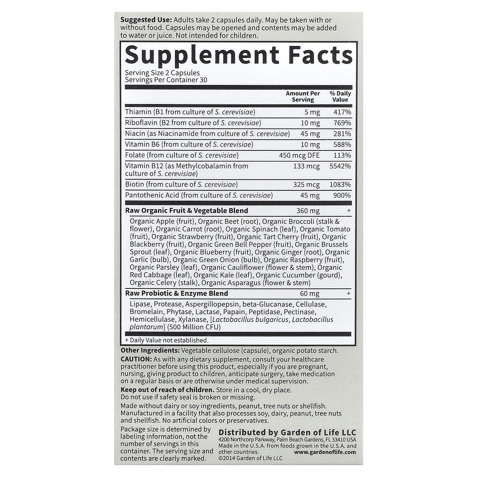 Garden of Life Vitamin Code RAW B-Complex 60 Cápsulas Veganas – Garden of Life Suplementos Vitaminas Vitamina B Complexo de Vitaminas B.