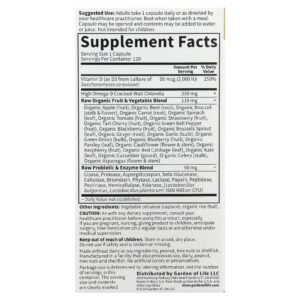23 frutas e vegetais em pó cultivados organicamente acrescentam antioxidantes de reforço, vitaminas e cofatores de nutrientes.
