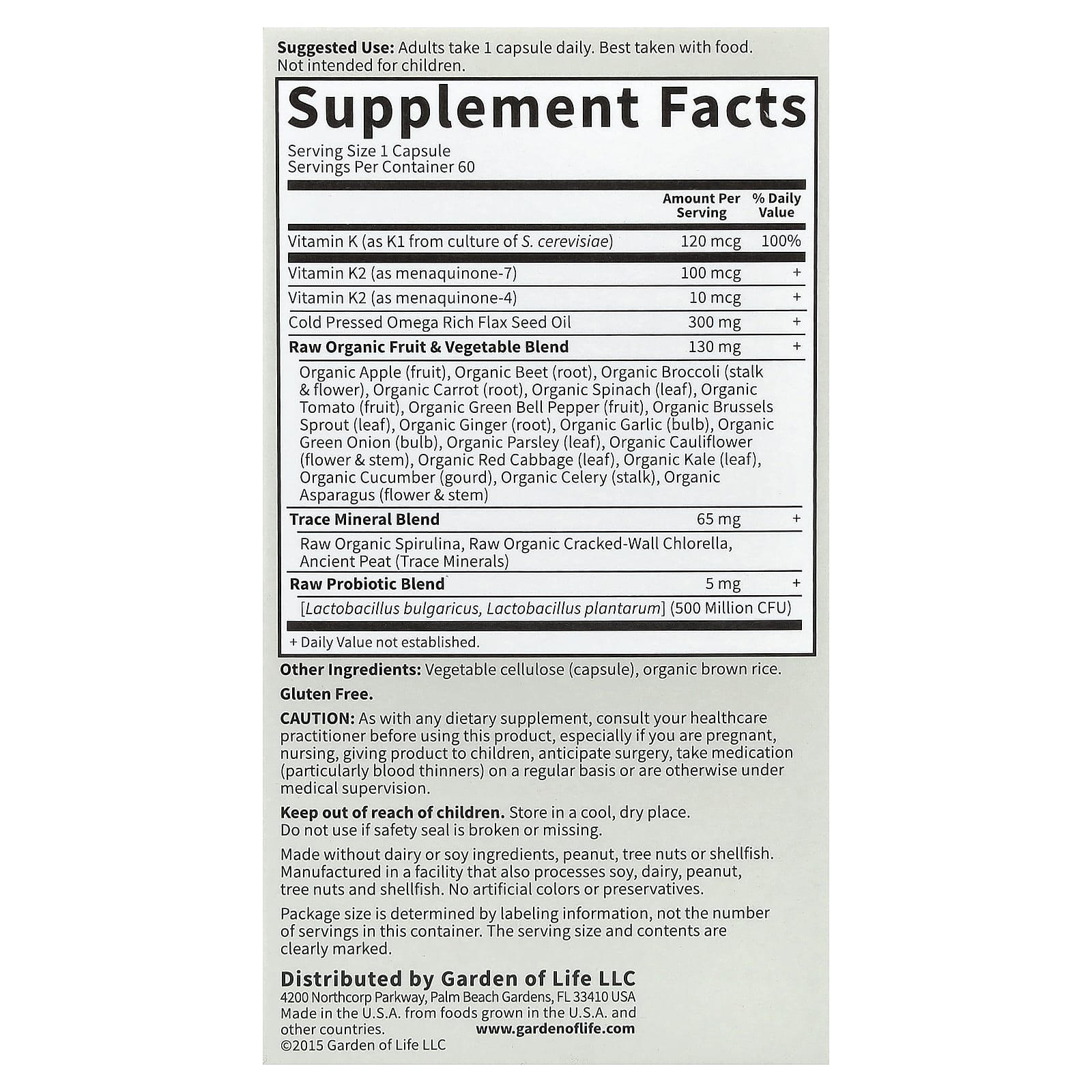 Garden of Life Vitamin Code RAW K-Complex 60 Cápsulas Veganas – Garden of Life Suplementos Vitaminas Vitamina K.
