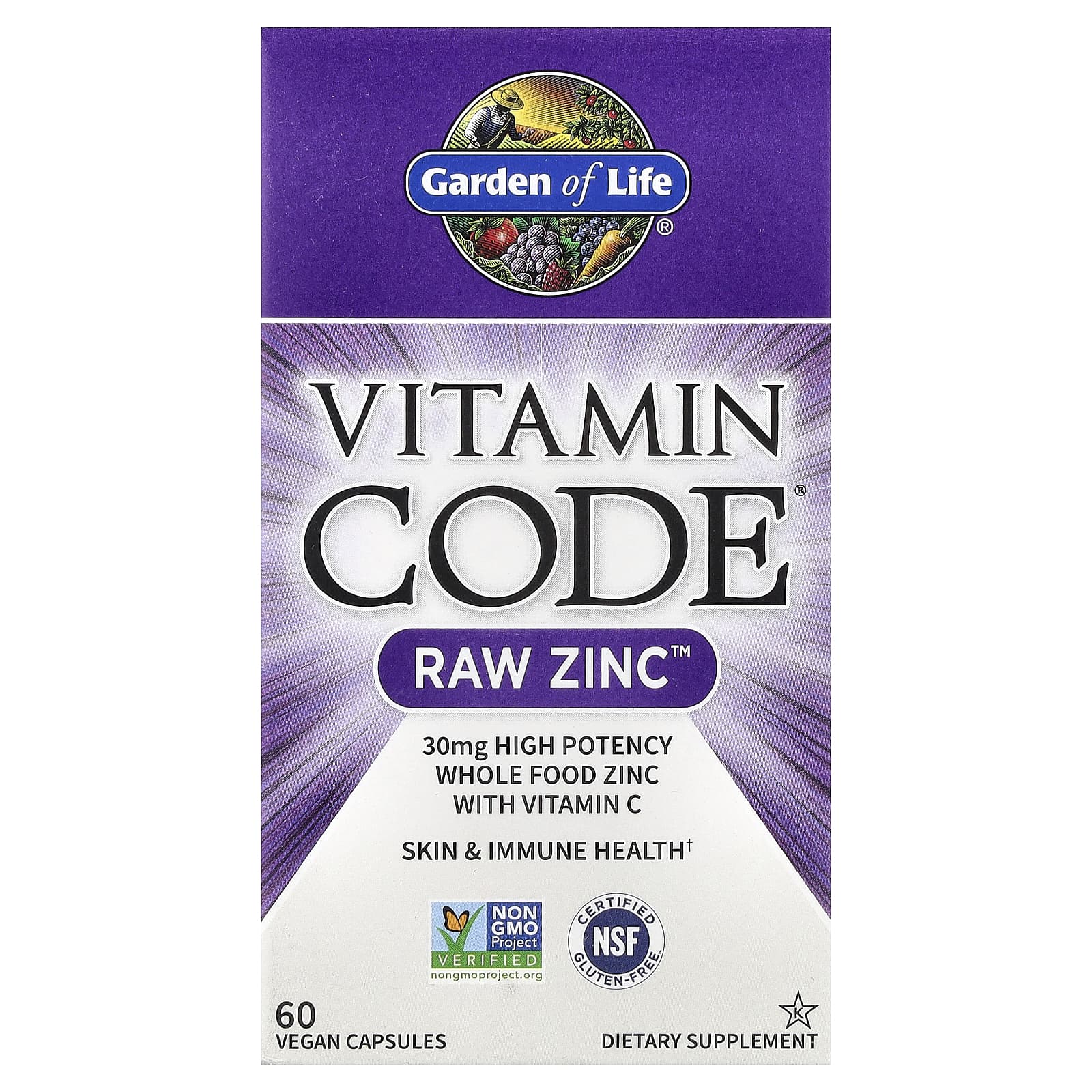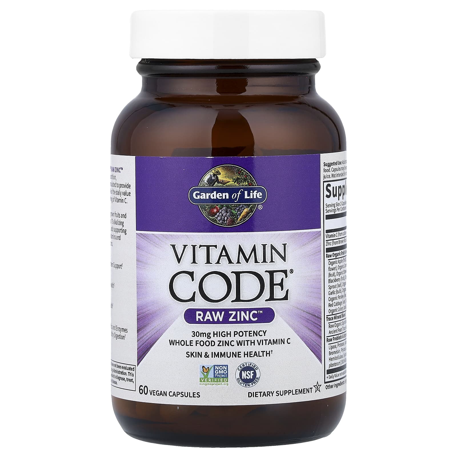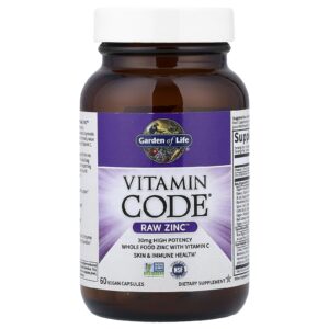 Vitamin Code® Raw Zinc™ é uma nutrição alimentar integral, especificamente formulada para fornecer 30 mg e 273% dos Valores Diários de Zinco, além de 60% de Vitamina C.
