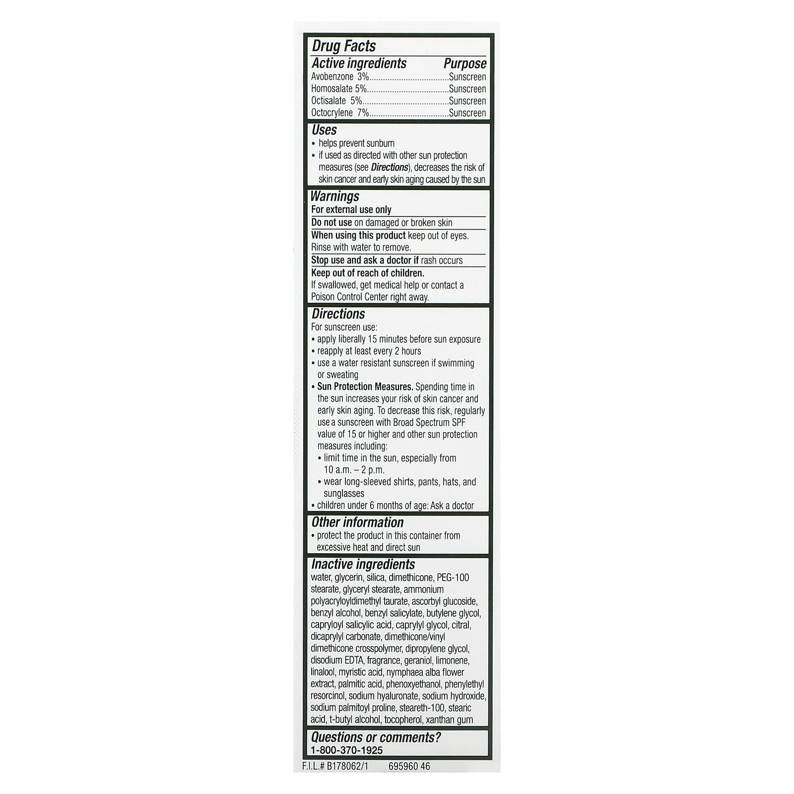 | Ingredientes Inativos: Água, glicerina, dióxido de silício, dimeticona, peg-100 stearate, monoestearato de glicerila, ammonium polyacryloyldimethyl taurate, ascorbyl glucoside, benzyl alcohol, benzyl salicylate, butylene glycol, capryloyl salicylic acid, caprylyl glycol, citral, dicaprylyl carbonate, dimethicone/vinyl dimethicone crosspolymer, dipropilenoglicol, edetato dissódico, fragrância, geraniol, limoneno, linalol, ácido mirístico, extrato da flor de Nymphaea alba, ácido palmítico, fenoxietanol, feniletil resorcinol, hialuronato de sódio, hidróxido de sódio, sodium palmitoyl proline, steareth-100, ácido esteárico, t-butyl álcool, tocoferol, goma xantana. | |