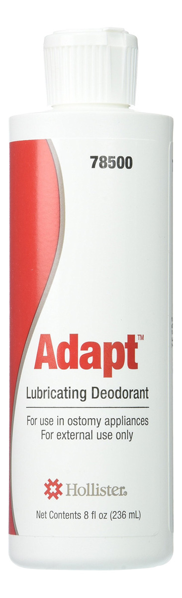 Desodorante Lubrificante Adapt — Frasco de 8 onças — Ajuda a evitar a estática e a aderência da bolsa — A lubrificação facilita o esvaziamento — Não é um perfume ou agente mascarador — Fórmula exclusiva (patente pendente)