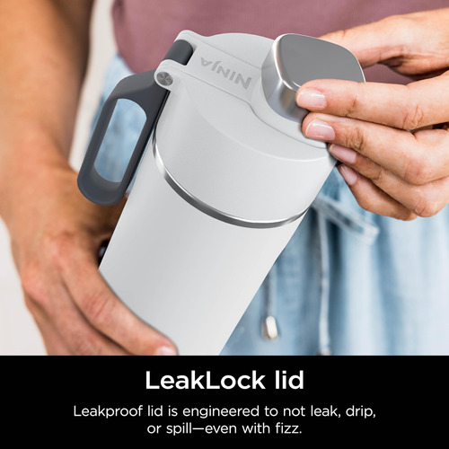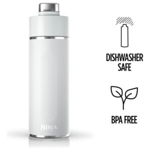 Garrafa de água de viagem Ninja DW2401WH Thirsti de 24 onças, para bebidas gaseificadas, mais frias e efervescentes por mais tempo, à prova de vazamentos, 24 horas de frio, lavável na máquina de lavar louça, copo isolado de aço inoxidável, branco nublado — começa a efervescente, permanece efervescente: o interior polido e ultramacio do BubbleLock garante bebidas mais frias e gaseificadas por mais tempo. – Perfeita para qualquer bebida: sem gás, com gás quente ou frio. – LEAKLOCK: A tampa à prova de vazamentos foi projetada para não vazar, pingar ou derramar gás. – TRIPLETHERMO: fria por 24 horas. Gelo por 2 dias. Quente por 12 horas. – PARA TODA A VIDA EM MOVIMENTO: cabe na maioria dos porta-copos (maiores que 3,15) e tem uma alça de silicone confortável para facilitar o transporte. – AÇO INOXIDÁVEL DURÁVEL: aço inoxidável 18/8 resiste a arranhões e amassados em todas as aventuras da vida. – FÁCIL DE LIMPAR: lavável na máquina de lavar louça e sem BPA. – O QUE ESTÁ INCLUÍDO: garrafa e tampa de viagem de 24 onças.