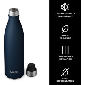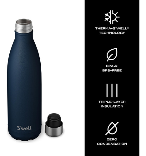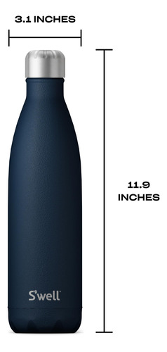 Garrafa de água de aço inoxidável S'well, 25 onças, azurita, recipientes isolados a vácuo de camada tripla mantém as bebidas frias por 48 horas e quentes por 24, sem BPA, perfeita para qualquer lugar – ISOLAMENTO DE CAMADA TRIPLA: garrafa Swell de 25 onças com aço inoxidável. Construção de três camadas, isolada a vácuo. A tecnologia exclusiva Therma-Swell mantém as bebidas frias por 48 horas e quentes por 24. Elegante e lindamente trabalhado. Lavar somente à mão. – O ajuste perfeito: nossas garrafas de água e recipientes para bebidas de aço inoxidável são projetados com uma abertura larga o suficiente para a maioria dos cubos de gelo, para que você possa reabastecê-los e reutilizá-los repetidamente. Seja na estrada, em trilhas de bicicleta ou na academia, você descobrirá que o Swell se encaixa perfeitamente na maioria dos porta-copos de tamanho padrão. – NÃO SE PREOCUPE: oferece um exterior sem condensação que não transpira nas mãos ou na bolsa. – HIDRATAÇÃO SEM PREOCUPAÇÕES: Feito de aço inoxidável 18/8 de qualidade alimentar com construção superior. Livre de BPA/BPS e reutilizável. Em conformidade com os regulamentos da California Prop 65. – SUSTENTABILIDADE SEM CONCESSÕES: Você não precisará comprometer a moda e a funcionalidade para viver de forma mais sustentável com nossas garrafas elegantes, lindamente feitas e feitas para durar. Cada Swell comprado conta para substituir milhões de garrafas plásticas descartáveis.
