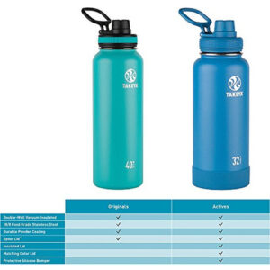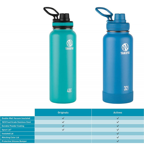 Mantenha suas bebidas frias ou quentes enquanto experimenta a conveniência em qualquer lugar. O aço inoxidável isolado a vácuo de parede dupla evita que a temperatura externa afete o interior e que a condensação se forme na garrafa. As garrafas Takeya Originals vêm equipadas com uma tampa à prova de vazamentos fácil de beber e têm uma ampla abertura para cubos de gelo.
