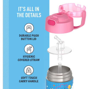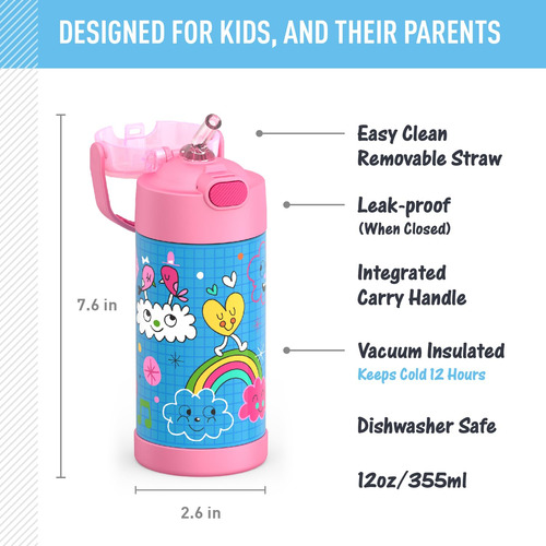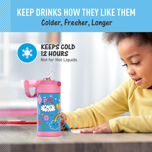 Garrafa de água THERMOS FUNTAINER com canudo – 12 onças, caderno de esboços – Garrafa de água isolada a vácuo de aço inoxidável para crianças com tampa – PERMANECE FRIA: a tecnologia de isolamento a vácuo THERMOS mantém as bebidas geladas por até 12 horas. Nossas garrafas de água para crianças são construídas de forma que suas bebidas sejam tão frescas por dentro quanto por fora. Não é adequado para líquidos quentes — DURÁVEL PARA USO DIÁRIO: A construção em aço inoxidável 18/8 de alta qualidade foi construída para lidar com quedas, amassados e diversos compartimentos de desbaste. Você pode colocar sua garrafa de água FUNTAINER na lava-louças, embora seja recomendável lavá-la à mão. Design adequado para crianças: escolha entre uma variedade de cores e padrões divertidos! Esta garrafa de água é leve e compacta com uma tampa de botão, por isso é fácil de transportar e abrir. A alça de transporte integrada possui uma alça de toque suave – CANUDO HIGIÊNICO COBERTO: ajude a manter os germes afastados com um canudo dobrável higienicamente coberto que também é removível para facilitar a limpeza – PROTEJA O QUE VOCÊ ADORA: este equipamento THERMOS KIDS é feito com materiais duráveis que podem ser lavados na máquina de lavar louça, destinados a manter o almoço e as bebidas como eles gostam. O quebra-cabeça da hora do almoço está oficialmente resolvido
