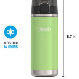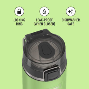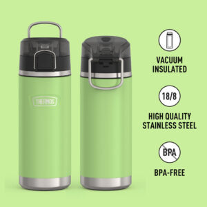 THERMOS ICON SERIES Water Bottle with Spout – 18 Ounce, Lime – Stainless Steel Vacuum Insulated Water Bottle with Lid – Stays cold: THERMOS vacuum insulation technology keeps drinks cold for up to 16 hours; No matter what unexpected adventures you encounter, at least one thing can stay just the way you like it; Not for hot liquids – Hygienic, high-flow spout: Equipped with a RAPIDRATE high flow spout for optimal flow and DURASHIELD hygienic covered spout that includes a locking ring that helps secure the lid in place – Daily durability: Perfect insulated water bottle for daily use; Made with high-quality 18/8 stainless steel construction to handle drops, dings and provide everyday durability and reliability; Comes in a variety of colors – Easy care and cleaning: This insulated water bottle is dishwasher safe, though washing by hand is recommended – Protect what you love: With 120 years of heritage, Thermos Brand food and beverage containers keep things fresh, sealed and protected; Trusted since 1904 because our products help make everyday life a little better, every time