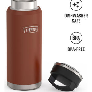 Garrafa de água de aço inoxidável ICON SERIES BY THERMOS com tampa roscada, 40 onças, selim — permanece quente ou fria: tecnologia de isolamento térmico a vácuo para máxima retenção de temperatura. Mantenha seu café quente ou sua água fria por horas — EXTREMAMENTE DURÁVEL: o aço inoxidável 18/8 de alta qualidade é confiável em qualquer época do ano, seja qual for o seu dia. Pode ser lavado na máquina de lavar louça (prateleira superior) – Abertura larga na boca: para facilitar a limpeza e acomodar o gelo. – TECNOLOGIA GRIPTEC: inclui uma alça na parte inferior da garrafa para uma base silenciosa, macia e antiderrapante, bem como uma alça na alça para uma superfície antiderrapante e fácil de transportar – Uma lenda viva: os ícones são criações raras que são amadas por gerações e imitadas há anos. A ICON SERIES BY THERMOS engloba a tecnologia que criou uma categoria e a arte que criou uma marca icônica