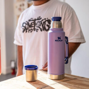 Stanley Classic Vacuum Insulated Wide Mouth Bottle – Lavender – BPA-Free 18/8 Stainless Steel Thermos for Cold & Hot Beverages – 1.5 QT, 10-11347-009 – KEEP IT HOT OR COLD: Our Stanley Classic Vacuum Bottle is made with superior insulation that keeps liquids (soup, coffee, tea) hot or cold drinks cool for up to 24 hours. Its also made with BPA-free materials, keeping its contents safe to consume – TOUGH AND DURABLE The industrial-grade 18/8 stainless steel construction on this insulated thermos means it can work just as hard as you do without impacting its performance. This is an ideal bottle to throw into your truck, work bag, or travel with it – MULTI-PURPOSE LID: The Stanley thermos is designed with a leak-resistant lid, so you can put it in your backpack without worrying about any spills. The wide mouth of the thermos helps with easy pouring into the lid that doubles as an eight-ounce cup – FILL IT FOR THE DAY Our vacuum bottle comes in multiple sizes 1.1qt, 1.5qt, and 2qt so you can fill it up once and be set for however long you need it. The collapsible handle makes it easy to transport with you – LIFETIME WARRANTY: BUILT FOR LIFE. Since 1913 weve promised to provide rugged, capable gear for food and drink, built to last a lifetime. Its a promise we still keep. Stanley products purchased from Stanley Resellers come with a lifetime warranty