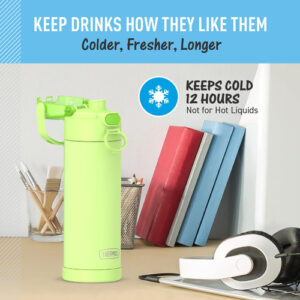 Garrafa isolada a vácuo de aço inoxidável THERMOS FUNTAINER de 16 onças com tampa de bico largo, limão neon – PERMANECE FRIO: a tecnologia de isolamento a vácuo THERMOS mantém as bebidas frias por até 12 horas. Nossas garrafas de água para crianças são construídas de forma que suas bebidas sejam tão frescas por dentro quanto por fora. Não é adequado para líquidos quentes — DURÁVEL PARA USO DIÁRIO: A construção em aço inoxidável 18/8 de alta qualidade é construída para lidar com quedas, amassados e diversos compartimentos de desbaste. Você pode colocar sua garrafa de água FUNTAINER na lava-louças, embora seja recomendável lavá-la à mão. Design adequado para crianças: escolha entre uma variedade de cores e padrões divertidos! Esta garrafa de água é leve e compacta com uma tampa de botão, por isso é fácil de transportar e abrir. A alça de transporte integrada possui uma alça de toque suave – BICO HIGIÊNICO COBERTO: ajude a manter os germes afastados com um bico higienicamente coberto – PROTEJA O QUE VOCÊ ADORA: este equipamento THERMOS KIDS é feito com materiais duráveis que podem ser lavados na máquina de lavar louça, destinados a manter o almoço e as bebidas como eles gostam. O quebra-cabeça da hora do almoço está oficialmente resolvido