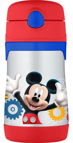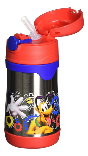 Garrafa térmica de palha de 10 onças de aço inoxidável isolada a vácuo, Mickey Mouse Clubhouse – A tecnologia de isolamento térmico a vácuo mantém as bebidas frias por até 10 horas; o exterior permanece livre de condensação – interior e exterior de aço inoxidável sem BPA; corpo contornado fácil de segurar – Tampa de botão de pressão fácil de abrir; o canudo de silicone macio é durável e confortável de beber – Não deve ser usado com líquidos quentes; pode ser lavado à mão ou lavado na máquina de lavar louça na prateleira superior – Capacidade de 10 onças; o tamanho do produto é um pouco menor do que garrafas térmicas de 12 onças