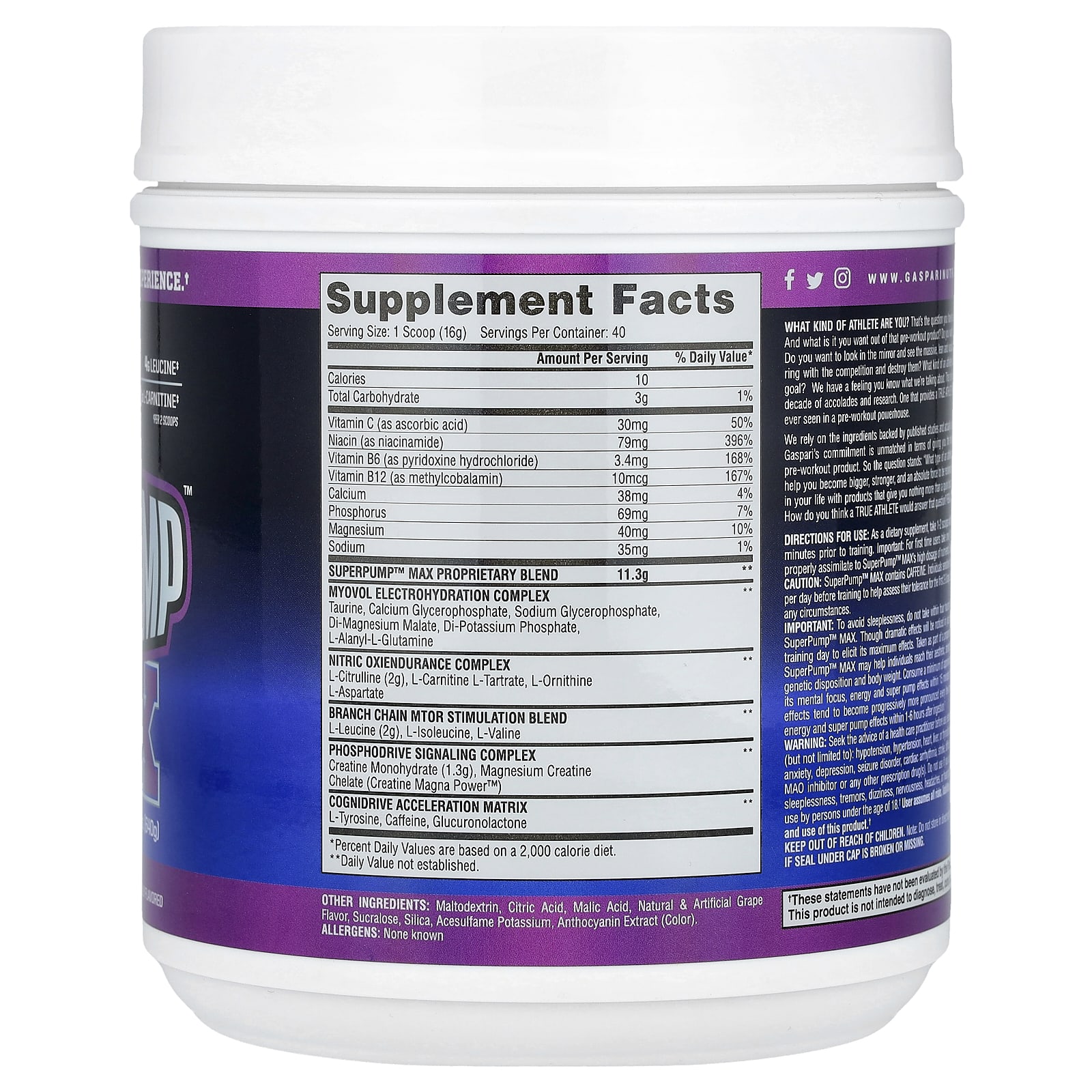 Gaspari Nutrition SuperPump Max Refrigerador de Uva 640 g (141 lbs) – Gaspari Nutrition Nutrição Esportiva Suplementos Pré-treino Pré-treino estimulante Cafeína Creatina Monoidrato de creatina.