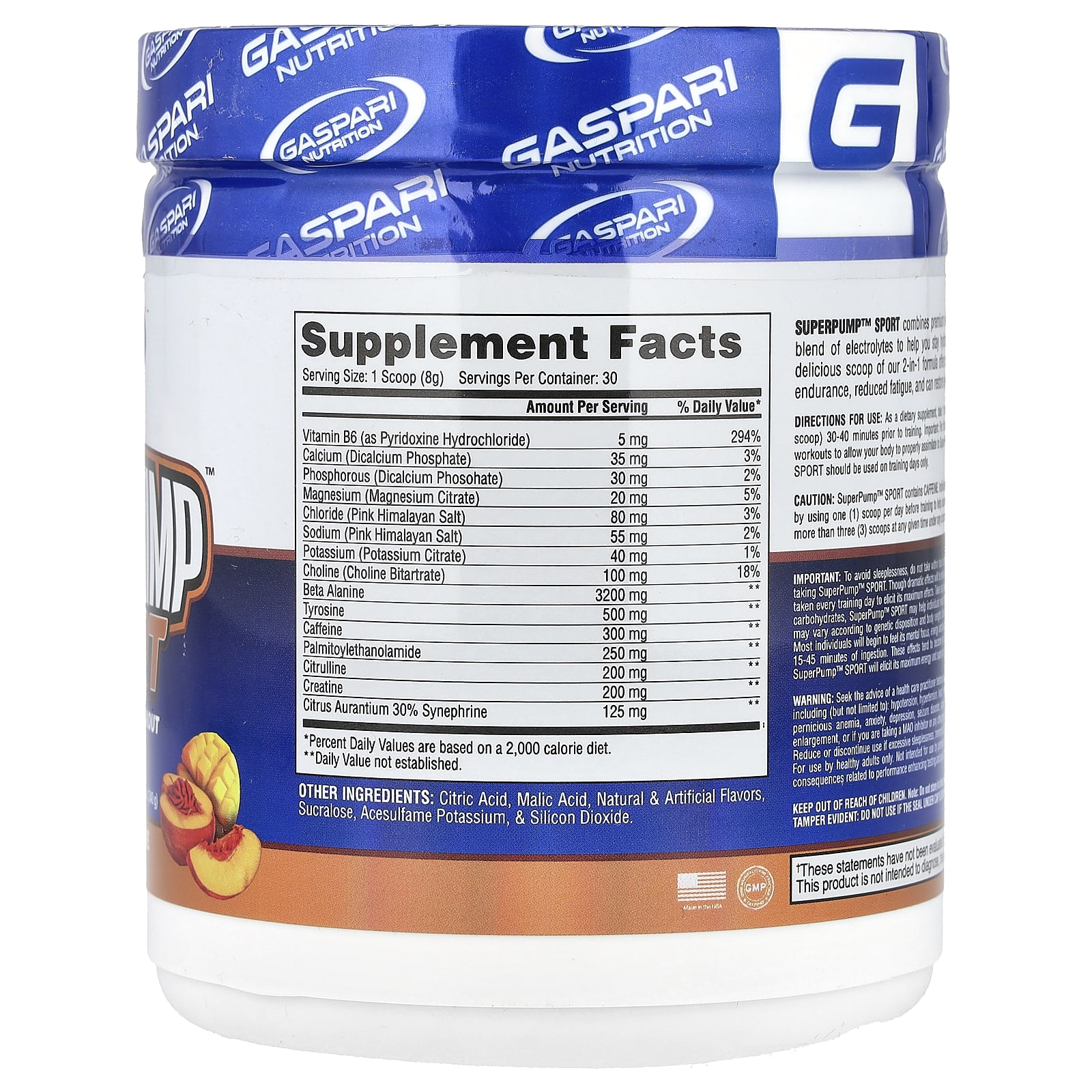 Gaspari Nutrition SuperPump™ Sport Pré-Treino Hidratante Manga e Nectarina 240 g (847 oz) – Gaspari Nutrition Nutrição Esportiva Suplementos Pré-treino Pré-treino para Desempenho Pré-treino estimulante.