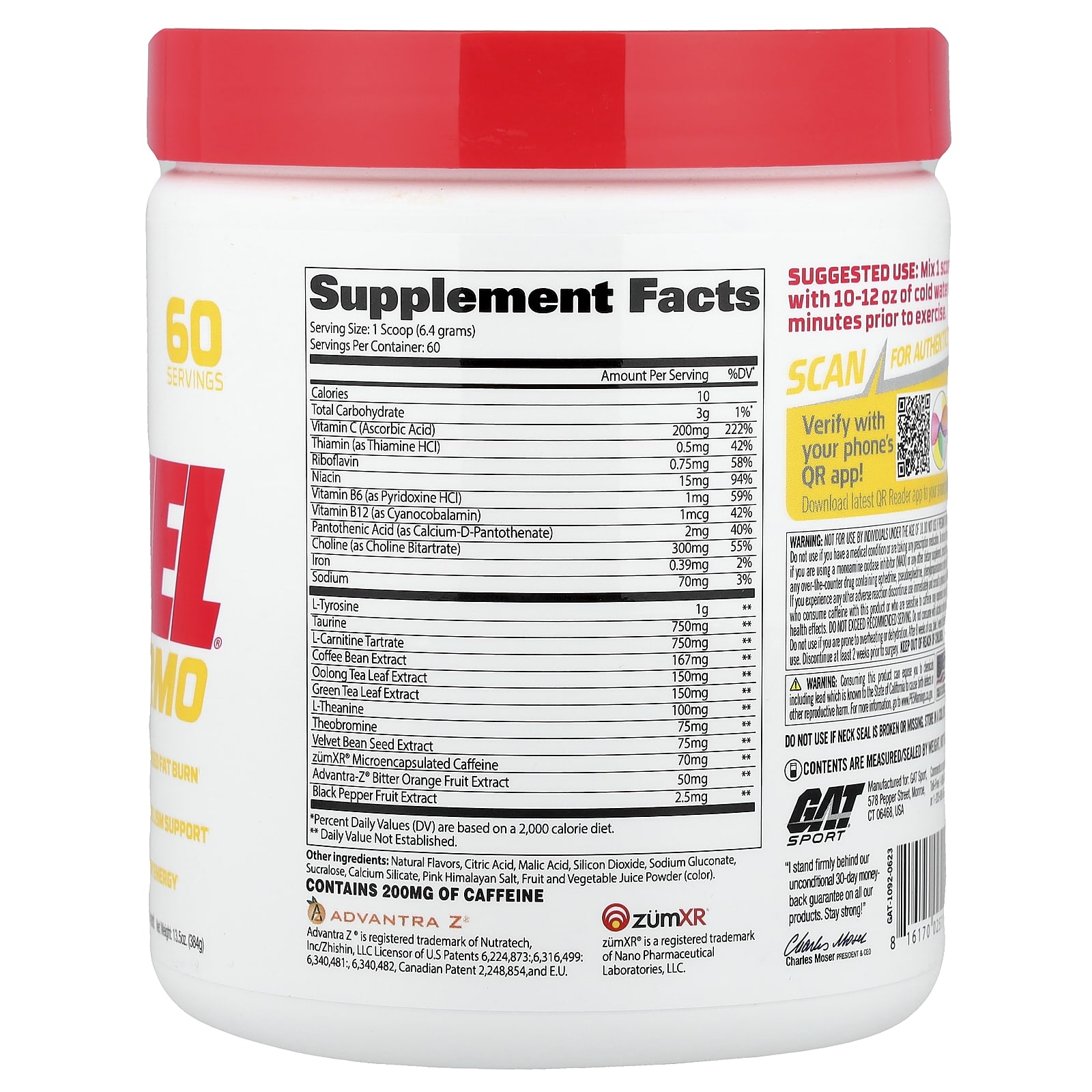 Não deve ser usado por menores de 18 anos. Não use se estiver grávida ou amamentando. Não use se tiver algum problema de saúde ou estiver tomando medicamentos prescritos. Não consuma este produto se estiver usando um inibidor de monoamine oxidase (IMAO) ou quaisquer outros suplementos, medicamentos prescritos ou medicamentos de venda livre contendo efedrina, pseudoefedrina, fenilpropanolamina ou outros estimulantes. Em caso de qualquer reações adversas, interrompa o uso imediatamente e consulte um médico. Indivíduos que consomem cafeína junto com este produto ou que sejam sensíveis à cafeína podem sofrer graves efeitos adversos à saúde. Não exceda a porção recomendada. Não consuma com álcool ou outros estimulantes. Não use se tiver tendência a aumento de temperatura corporal ou desidratação. Após 8 semanas de uso, pare de tomar por 1 semana antes de voltar a consumir. Interrompa o uso 2 semanas antes de qualquer cirurgia. Mantenha fora do alcance de crianças.