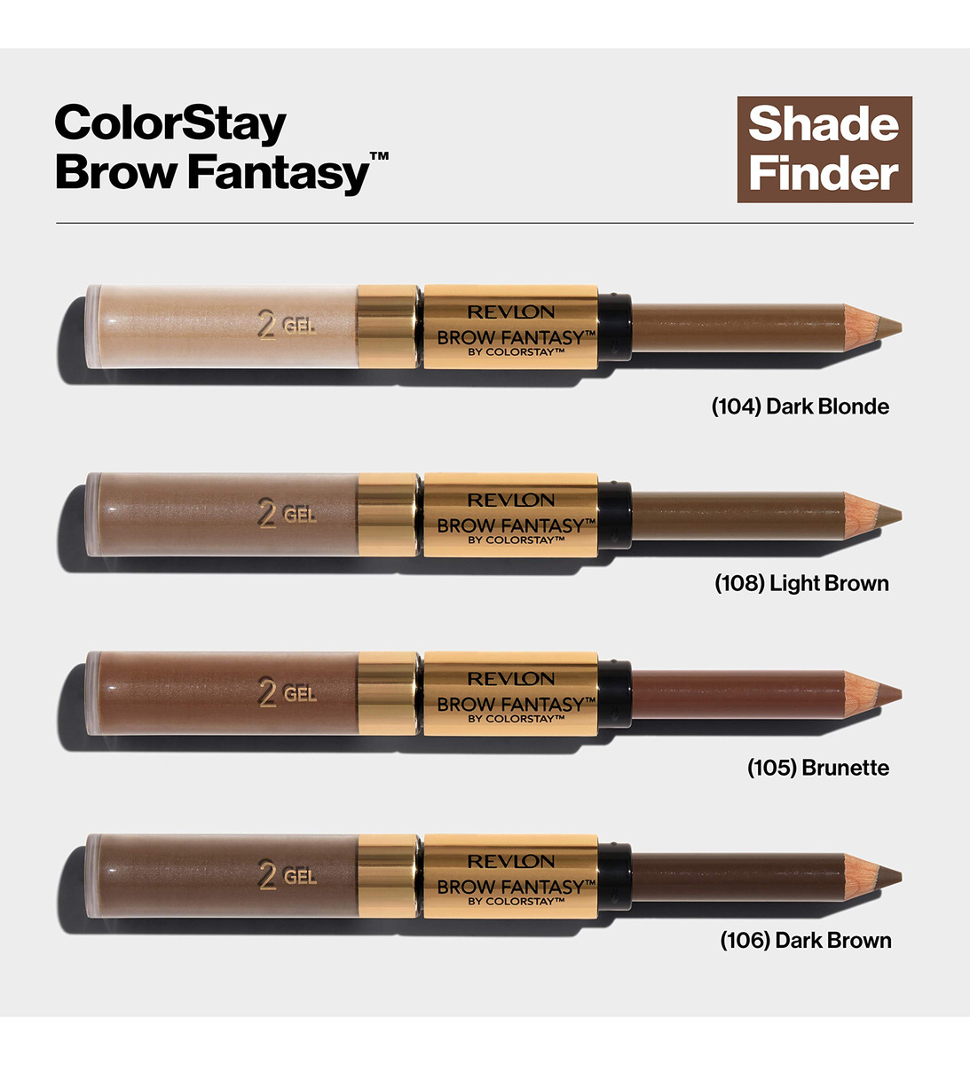 Revlon Eyebrow Gel & Pencil, ColorStay Brow Fantasy 2-in-1 Eye Makeup, Longwearing with Precision Tip, 105 Brunette, 0.04 Oz – YOUR BEST BROWS MADE EASY: Our dual sided eyebrow pencil features the pencil end that fills and defines your brows with natural-looking color. The tinted eyebrow gel on the other end shades and set – TINTED GEL FORMULA: This brow gel formula is tinted just enough to deliver sheer color, enhance, and set your brows in the most natural way – OPHTHALMOLOGIST TESTED: Our eyebrow pencil is tested by ophthalmologists, so the formula is safe for contact lens wearers – AVAILABLE IN FOUR NATURAL SHADES: Available in 4 natural shades to match your eyebrow like dark brown, light brown, brunette, and dark blonde – LIVE BOLDLY WITH REVLON MAKEUP: Revlon has the high quality, high pigment, bold makeup you need to be yourself. Create any lookday to night, weekday to weekendwith our longwear color eyeshadows, eyeliners, matte or shiny lipsticks, and more