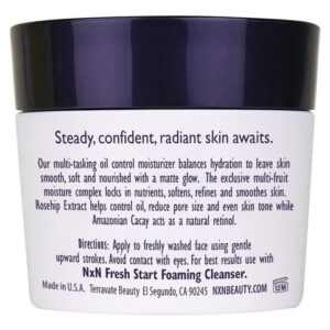 radiante, firme e confiante o aguarda. Nosso hidratante multifuncional controla o excesso de oleosidade enquanto equilibra a umidade para deixar a pele macia, suave e nutrida com um acabamento fosco. O exclusivo Complexo Hidratante de Frutas, com extratos de melancia, maçã, tamarindo e lentilha, retém nutrientes, suaviza, refina e suaviza a pele. O extrato de rosa mosqueta ajuda a controlar naturalmente o óleo, reduz o tamanho dos poros e uniformiza o tom da pele, enquanto o Amazonian Cacy atua como um retinol natural. Esta fórmula penetra profundamente para suavizar e aperfeiçoar a pele, oferecendo propriedades antienvelhecimento com ingredientes naturais.