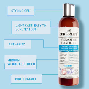 CURLSMITH — Hydro Style Flexi-Jelly — Gel definidor vegano para cabelos ondulados, encaracolados ou crespos (8 fl.oz) — Defina e hidrate — Nosso gel líquido leve tem uma forte aderência para definir e realçar cachos e ondas sem sobrecarregá-los ou causar acúmulo no couro cabeludo. – COMO A MÁGICA ACONTECE – Aplique nos cabelos molhados e cubra uniformemente todos os fios. Suavize todas as mechas, sele a umidade e dome as cutículas. – O QUE NOS TORNA DIFERENTES – Inspirado em gerações de remédios caseiros para o cabelo, o Curlsmith combina alimentos frescos que adoram cachos com itens básicos do armário de cozinha e ingredientes naturais raros para criar produtos premium que realmente funcionam. Ingredientes saudáveis, resultados profissionais, sem concessões. – SEM DESAGRADÁVEIS – Todos os nossos produtos têm zero colheres de sulfatos, silicones, óleos minerais e ftalatos. Além disso, eles são cacheados para meninas, são 100% veganos e livres de crueldade. – RESULTADOS REAIS – Acreditamos que a prova está no pudim e parece que nossos clientes também acreditam nisso: “O melhor banho de todos os tempos!” “Magia séria!” “Produto incrível!”.