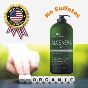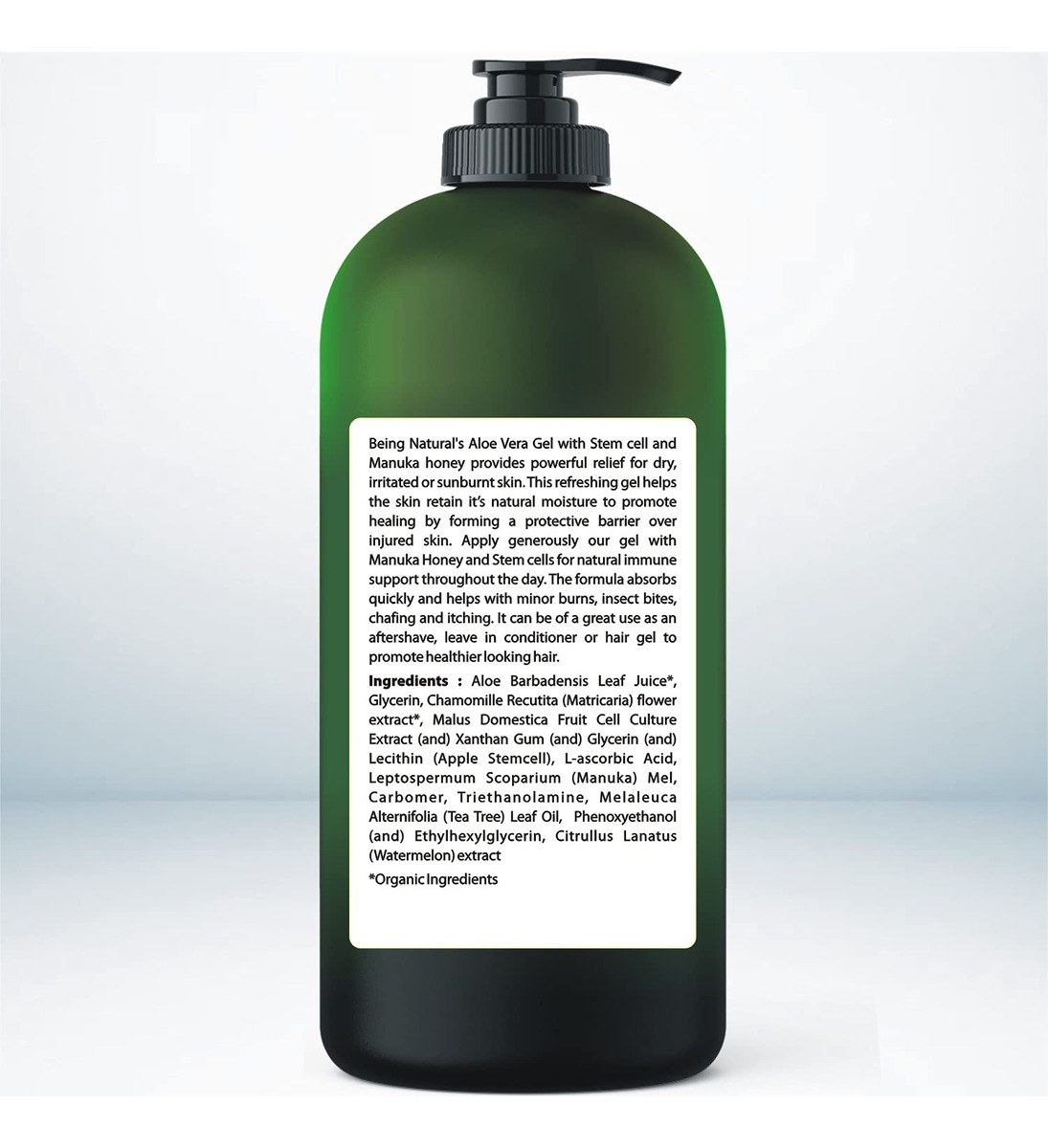 Gel de aloe vera – o gel de aloe vera mais forte e mais puro do mercado: nosso gel de aloe vera é feito de suco de folhas de aloe vera orgânico recém-cortado, não em pó. Portanto, recomendamos testar primeiro em áreas menos sensíveis para garantir que nenhuma reação ocorra antes de aplicá-lo no rosto ou em qualquer área sensível. – Nossos produtos superam a concorrência: Nosso produto é diferente e superior à concorrência devido à nossa qualidade de absorção, não deixando resíduos pegajosos e deixando sua pele, rosto e cabelo macios e sedosos. Nosso gel Aloevera tem células-tronco e mel de Manuka, que ajudam na renovação da pele, estimulando a regeneração celular. – Muitos benefícios da planta milagrosa da natureza – Um gel, muitos benefícios. Use em sabonete, gel desinfetante para as mãos DIY, protetor solar e brilho labial, alivie suas queimaduras solares, creme para estrias, kit de cera, limpe suas cicatrizes de acne e erupções cutâneas, cure as picadas das picadas, trate seus cortes, reduza a coceira e a caspa no couro cabeludo, ajude no aparecimento da celulite, creme de barbear e muito mais! – Tratamento diário para rosto, pele, corpo e cabelo – Nosso gel de aloe vera orgânico puro é feito de 100 por cento de plantas de aloe vera infundidas com óleo de melaleuca, células-tronco de maçã e mel de Manuka e é essencial para homens e mulheres. Nossos cuidados com a pele são feitos nos EUA. Sem sulfato, sem álcool e sem parabenos — Hidratação sem sensação de oleosidade: nosso gel orgânico puro natural repõe a umidade e o mel de Manuka e as células-tronco ajudam na produção de elastina e colágeno para o rejuvenescimento da beleza da pele. Esta loção/gel é rica em antioxidantes para ajudar a combater os sinais de envelhecimento, queimaduras solares e fornece hidratação profunda.
