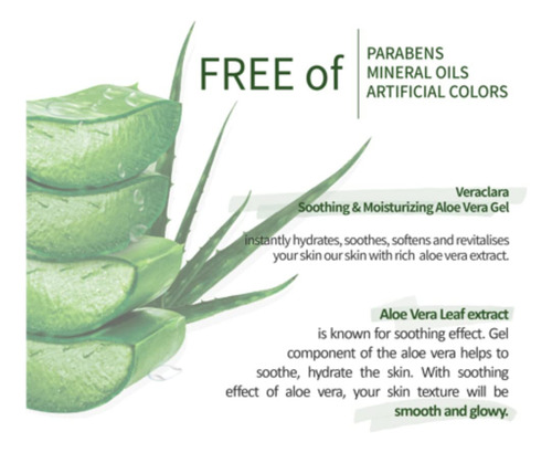 Veraclara Novo gel hidratante e calmante de aloe vera, 95 por cento (pureza) de cosméticos coreanos (3)