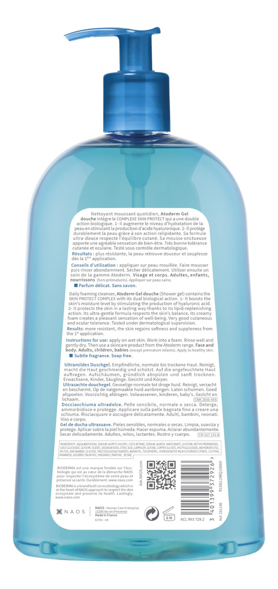 Bioderma – Sabonete líquido com gel de banho hidratante Atoderm – Limpador hidratante de rosto e corpo para pele sensível normal a desidratada – Gel de limpeza sem sabão e sem decapante que respeita a pele seca e sensível. – Limpa suavemente. Respeita o equilíbrio da pele. Suaviza e suaviza. Enxágue sem esforço como espuma cremosa. Tolerância muito boa – Sem sabão – Sem cores artificiais – Fragrância leve – Sem parabenos – Sem concessões, a pele pode ser nossa maior aliada. Ele fornece uma barreira protetora, nos defendendo de possíveis agressores, como poluição e ar seco. Se sensibilizada por esses fatores externos, a pele pode ficar seca e desconfortável. Caracterizada por desconforto temporário, sensação de aperto e leve descamação, a pele seca é suscetível à desidratação e pode facilitar a penetração de irritantes cutâneos. É importante cuidar da pele seca, fornecendo-lhe fórmulas adaptadas às suas necessidades, nutrindo-a diariamente com ingredientes nutritivos e calmantes.