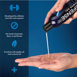 O sabonete corporal Defense fornece óleos essenciais naturais de força total. OFERECE UM AMPLO ESPECTRO DE BENEFÍCIOS DERIVADOS DO ÓLEO DE MELALEUCA E ÓLEOS DE EUCALIPTO. INGREDIENTE NATURAL CLINICAMENTE COMPROVADO para ajudar a eliminar bactérias e fungos. COMPROVADO NO MUNDO DOS ESPORTES DE CONTATO. REMOVE COM EFICIÊNCIA sujeira, sujeira, sujeira da academia, suor, poluição atmosférica, alérgenos, grunge e óleos acumulados. A mais alta qualidade. Formulada para oferecer qualidade, consistência e longevidade. ESPUMA DE ALTA DENSIDADE para limpeza profunda dos poros. A ação superior de enxágue restaura a barreira natural da pele e ajuda a controlar a produção de sebo e células mortas da pele. PERFEITA PARA ESTILOS DE VIDA ATIVOS, apoia rotinas de higiene adequadas. Recomendado após os treinos. INGREDIENTES DESODORIZANTES NATURAIS ajudam a eliminar bactérias causadoras de odor. Perfume hipoalergênico de eucalipto, seguro para peles sensíveis. NATURAL, LIVRE E CLARO. SEM FRAGRÂNCIAS, CORANTES, COSMÉTICOS, COMPOSTOS PETROQUÍMICOS, TRICLOSAN, ÁLCOOL OU LAURILSULFATO DE SÓDIO. FEITO NOS EUA – Ingredientes naturais: óleo de melaleuca e óleo de eucalipto oferecem um amplo espectro de benefícios para se defender contra odores corporais e irritações cutâneas comuns. – Vegano e não transgênico: não contém fragrâncias sintéticas, conservantes, derivados de petróleo, triclosan, laurilsulfato de sódio ou testes em animais. – Espuma rica: a espuma é importante porque penetra nos poros da pele com mais eficiência. A mistura exclusiva da Defense fornece ingredientes naturais profundamente nos poros da pele. – Hidrata e acalma: os óleos de coco, jojoba e oliva fornecem propriedades curativas e hidratantes para revigorar e revitalizar a pele. – Apoia a saúde da pele: restaura a barreira natural da pele e ajuda a controlar a produção de sebo e células mortas da pele. Nenhum perfume residual é deixado na pele.