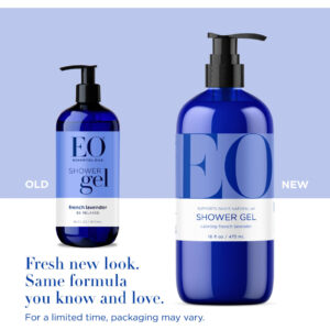 Sabonete líquido EO Shower Gel, 16 onças (pacote com 2), lavanda, condicionador de pele orgânico à base de plantas com óleos essenciais puros — Contém frascos de 2 a 12 onças de gel de banho EO Lavender — Reformulado com os principais ingredientes ativos para mimar. Sem glúten — A glicerina vegetal, um umectante natural, ajuda a manter a hidratação ideal — Vitamina A, um poderoso antioxidante, melhora a saúde da pele — O lindo aroma floral da lavanda pura o óleo relaxa e acalma os sentidos a cada uso.