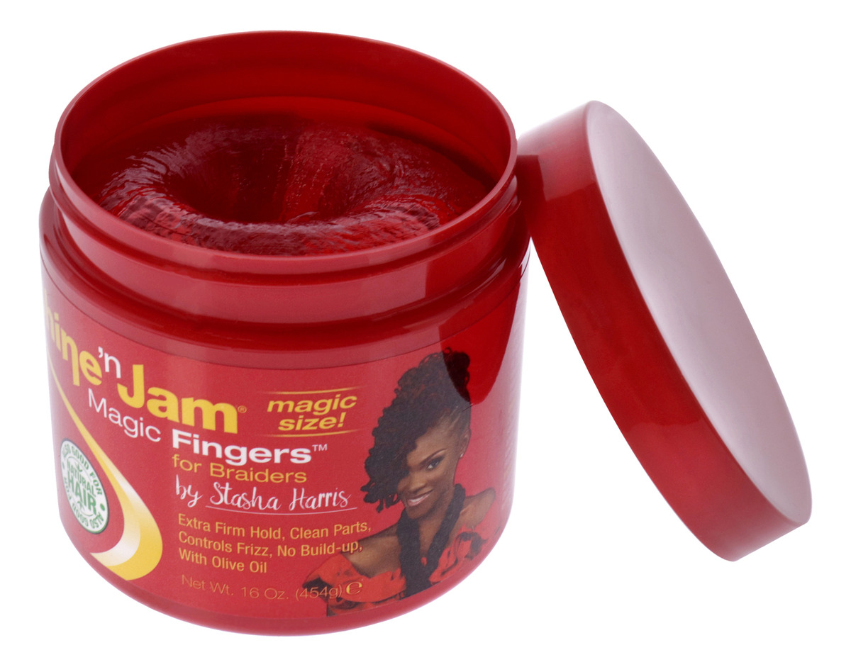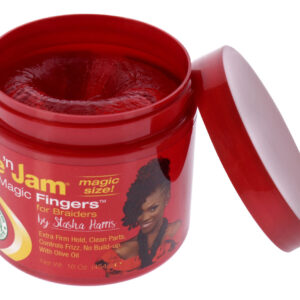 Shine 'n Jam Magic Fingers é um produto que contém azeite de oliva e proteínas da seda que ajudam a nutrir o cabelo e o couro cabeludo e a manter o cabelo com aparência e sensação saudáveis e gerenciáveis.