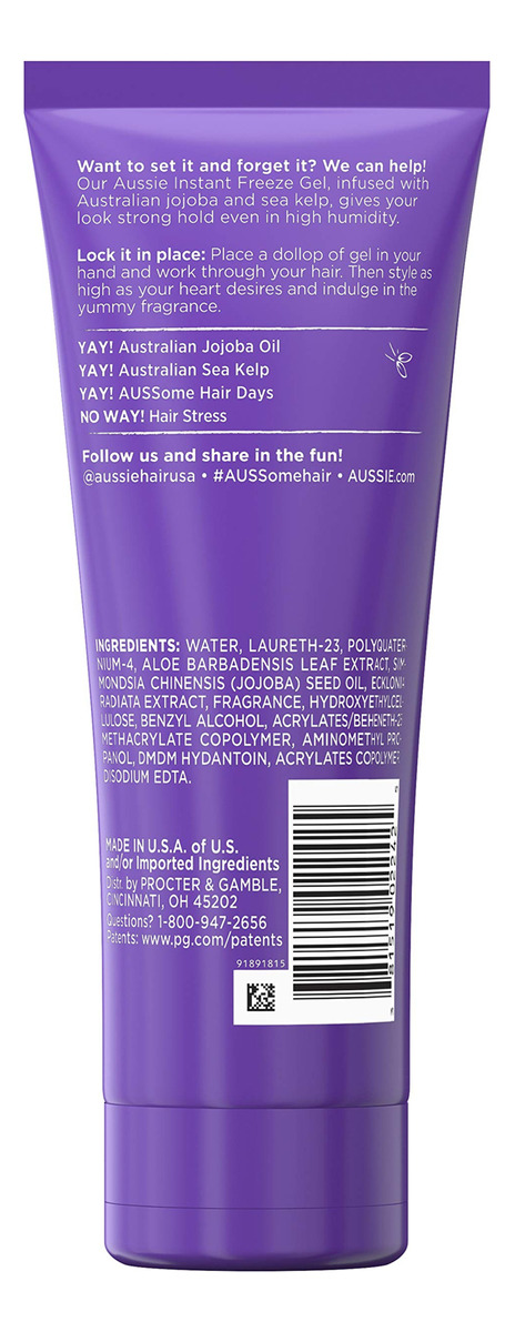Gel de cabelo Aussie Instant Freeze com óleo de jojoba e algas marinhas, 7 onças (pacote com 1) — perfeito para todos os tipos de cabelo