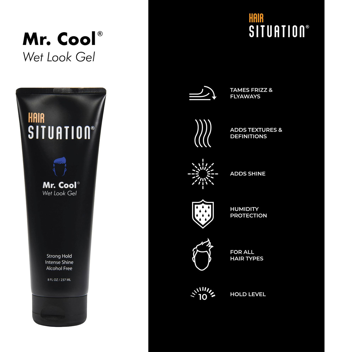 DEFINIR. CONTROLE. TEXTURIZAR. Dê ao seu cabelo uma aparência definida e brilho extra com este gel de cabelo premium sem álcool. Com alta viscosidade e acabamento flexível, nossa fórmula de gel de cabelo masculino sem álcool doma seu cabelo rebelde, confere um brilho intenso ao seu estilo e desfrute do irresistível aroma masculino fresco enquanto você faz isso. O acabamento flexível à prova de suor permite movimentos naturais e permite que seus estilos permaneçam no lugar o dia todo! Crie um estilo de cabelo intenso e brilhante em minutos. Basta pegar uma pequena quantidade do gel de cabelo Mr. Cool, misturá-lo vigorosamente e esfregá-lo no cabelo, modelando-o conforme desejado. Este gel modelador de cabelo para homens criará cabelos perfeitamente domesticados que parecem luminosos e brilhantes, independentemente de você ter cabelos lisos, encaracolados ou ondulados! Um presente prático e atencioso para familiares e amigos em aniversários, Natal, formatura ou qualquer ocasião especial para presentear. Principais características que tornam o gel de cabelo Mr. Cool No-Flake a melhor compra! Apresenta um acabamento de alta fixação que resiste à umidade para manter seu cabelo com aparência elegante o dia todo. Cria uma aparência de cabelo espessa, exuberante e luminosa. Sem álcool, adiciona um acabamento brilhante com controle total do frizz. Sem flocos ou resíduos pegajosos. Gel modelador de cabelo sem flocos, adequado para cabelos médios a grossos. Cria uma aparência definida enquanto doma cabelos rebeldes. Rock Esta fórmula natural deixará seu cabelo contido, maleável e brilhante! – GEL DE CABELO COM APARÊNCIA MOLHADA: Um homem social super confiante que deseja cabelos lisos para trás com alto brilho e uma fortaleza para uma noite na cidade. Seja seu modelo encaracolado, ondulado ou liso, o Mr. Cool Wet Look Gel é um acessório de higiene indispensável para todos os homens! – Defina e brilhe: este gel modelador de cabelo sem álcool doma seu cabelo rebelde para uma aparência de precisão estruturada sem frizz que deixa seu cabelo luminoso, texturizado e brilhante. – À prova de suor e de fixação durante todo o dia: para fixação máxima, o gel de cabelo bloqueia a umidade, permitindo que seu cabelo mantenha sua forma definida sem ficar crocante ou pegajoso. A fórmula contém ingredientes ativos e vitaminas para fortalecer a saúde do cabelo e do couro cabeludo. – FÓRMULA SEM RESÍDUOS: a fórmula de gel de cabelo Extreme hold Styling dura o dia todo sem escamas ou acúmulo de resíduos. Formulado sem parabenos, sulfato de BPA, silicone e vaselina. – Perfume masculino: este gel modelador superfirme sem flocos é formulado com um aroma refrescante que combina com o penteado definido sem frizz para um charme irresistível que chamará a atenção. – FÁCIL DE USAR: coloque uma pequena quantidade do gel modelador Hair Situation nas palmas das mãos e distribua o gel uniformemente no cabelo até crie um penteado definido com um brilho intenso e um aroma irresistível.