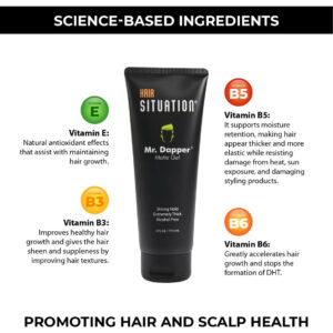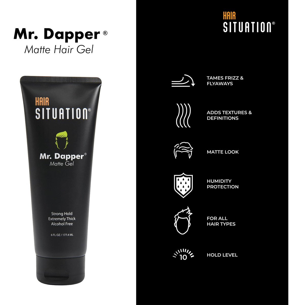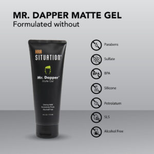 Hair Situation Mr. Dapper Matte Look — Gel de cabelo extra forte e firme para homens, feito para todos os tipos de cabelo, protetor de umidade, antifrizz e antifrizz, sem álcool e sem flocos — Gel de cabelo com acabamento fosco — Se você está procurando um acabamento fosco e de baixo brilho, nosso gel de cabelo masculino Mr. Dapper foi formulado para oferecer uma aparência limpa e polida, para que você não precise se preocupar com excesso de brilho fazendo isso com brilho. – APARÊNCIA NATURAL E FORTE Diga adeus ao seu cabelo bagunçado e ofereça controle, estrutura, versatilidade e definição duradouros para estilos difíceis de segurar, com nosso gel modelador extremamente espesso para homens, que funciona tão bem em cabelos secos quanto molhados. – PARA PENTEADOS ICÔNICOS – Obtenha a máxima flexibilidade de modelagem e leve seu estilo a qualquer lugar graças ao nosso gel forte para homens, perfeito para todos, desde barbeiros e cabeleireiros profissionais, homens bem-sucedidos, frequentemente em um ambiente conservador que exige cabelos arrumados o dia todo, até bartenders e homens em qualquer lugar. – Produto estilizador perfeito para homens. Gel fosco perfeito e resistente para todos os tipos de texturas de cabelo e todas as possibilidades de estilo. Não importa se você tem cabelos ondulados, encaracolados ou com textura grossa, pois esse creme modelador pode domar o crespo sem deixar o cabelo pesado. – Livre de substâncias químicas nocivas – Sem parabenos, sem ftalatos, sem corantes, sem sulfato, sem BPA, sem cor sintética, sem silicone e sem crueldade. Pare de usar produtos para cabelo masculino com álcool secante, o que é muito ruim para o cabelo. Em vez disso, experimente este incrível gel modelador de cabelo que é mais suave para o cabelo e couro cabeludo, com ingredientes nutritivos para cabelos com aparência saudável. – MILHARES DE USUÁRIOS SATISFEITOS – Escolheram o Hair Situation como um item essencial para sua rotina de cabeleireiro.