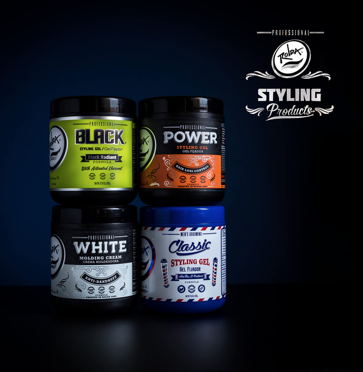 Pacote com 2 unidades de gel de cabelo Rolda Alcohol-Free Black Styling dá ao cabelo uma fixação forte e duradoura e tem uma cor preta exclusiva para cobrir os grisalhos e fazer com que os cabelos escuros pareçam super elegantes. Feito com ingredientes de qualidade, nosso gel preto inclui carvão ativado para nutrir e hidratar o cabelo. Nosso gel modelador é livre de álcool, parabenos e glúten. Este gel modelador profissional foi especialmente formulado para dar a você aquela aparência perfeita de gel liso com brilho médio e sem descamação. Obtenha a fixação firme e o preenchimento colorido de que seu cabelo escuro está precisando. Todos os produtos Rolda foram criados para barbeiros profissionais e foram inspirados em nossa herança venezuelana. – Gel modelador preto para cabelos escuros, pacote com 2 unidades; fornece uma fixação forte e uma tonalidade temporária para cabelos; a fórmula Black Radiance inclui carvão ativado; gel temporário de tintura de cabelo preto; adicione uma aparência ousada e elegante aos cabelos escuros preenchendo fios mais claros ou use para cobrir cabelos grisalhos indesejados; contém carvão ativado para nutrir e hidratar o cabelo; a cor lava No chuveiro — dura muito forte por até vinte e quatro horas; gel não pegajoso e não gorduroso para Cabelo; este gel modelador ultrarresistente mantém o cabelo no lugar sem parecer duro ou rígido; espiga o cabelo facilmente — gel estilizante; oferece brilho médio para uma aparência lisa que você vai adorar; para homens e mulheres com cabelos escuros; nosso gel profissional de cabelo preto oferece cuidados caseiros de qualidade para salão e barbeiro — gel de cabelo sem álcool e sem parabenos; nossa fórmula de gel de cabelo sem glúten e sem flocos ajuda a evitar descamação e resíduos Obtenha de outros géis para modelar o cabelo; fragrância masculina semelhante a uma colônia