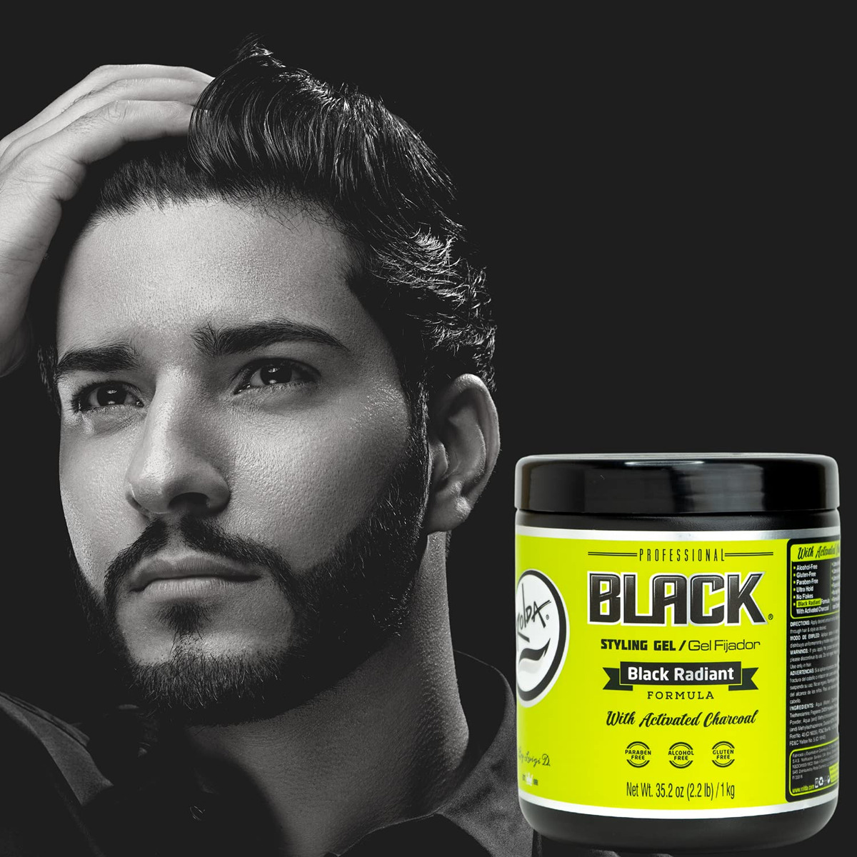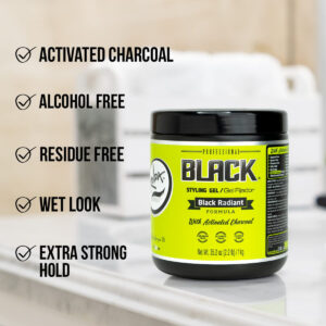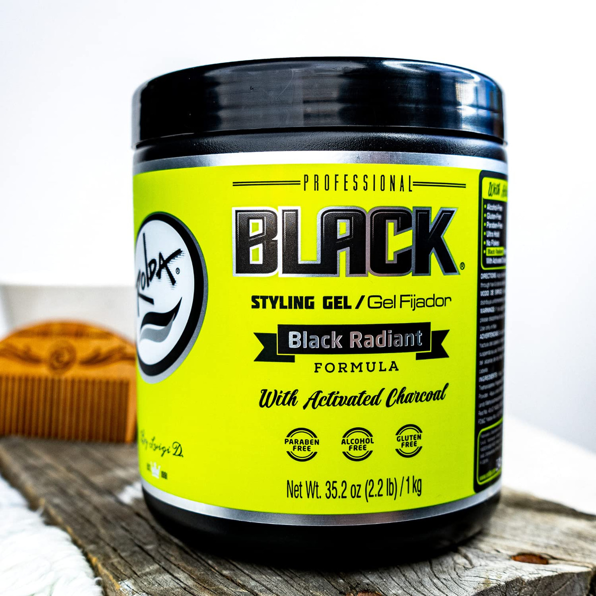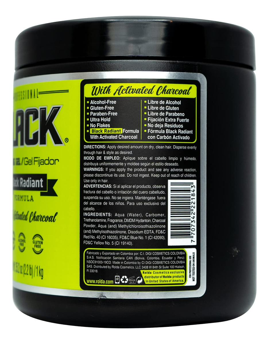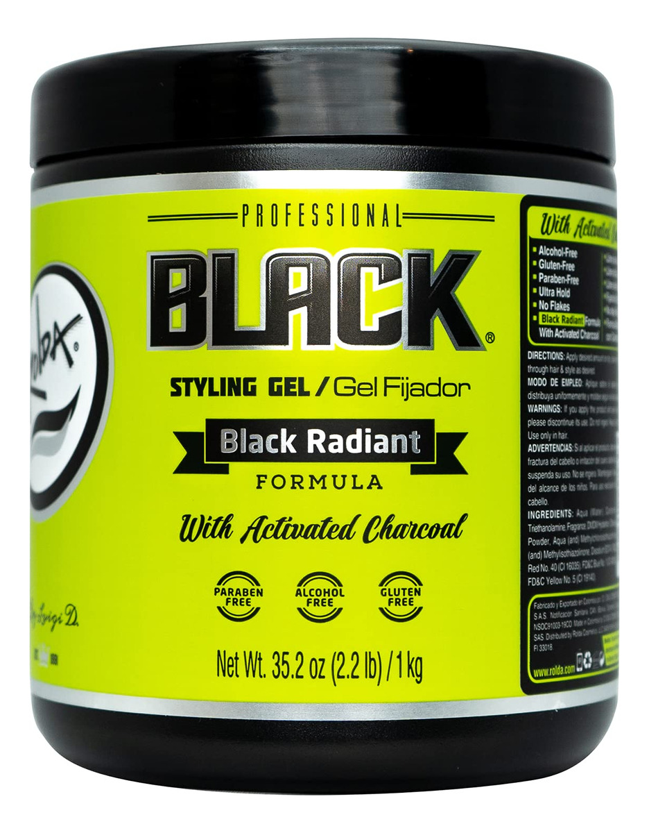 Gel modelador Rolda Black Styling Extra Strong Hold 35,2 onças — Gel modelador preto para cabelos escuros; fornece uma fixação forte e uma tonalidade temporária para cabelos; a fórmula Black Radiance inclui carvão ativado — gel temporário de tintura preta para cabelos escuros; adicione uma aparência ousada e elegante aos cabelos escuros preenchendo fios mais claros ou use para cobrir cabelos grisalhos indesejados; contém carvão ativado para nutrir e hidratar o cabelo; a cor desbota no chuveiro — Resistência extra forte Por até vinte e quatro horas; gel não pegajoso e não oleoso para cabelos; este gel modelador ultrarresistente mantém o cabelo preso Coloque sem parecer duro ou rígido; espete o cabelo facilmente — gel modelador elegante; oferece brilho médio para uma aparência lisa que você vai adorar; para homens e mulheres com cabelos escuros; nosso gel profissional de cabelo preto oferece cuidados de qualidade para salão e barbeiro em casa — gel de cabelo sem álcool e sem parabenos; nossa fórmula de gel de cabelo sem glúten e sem flocos ajuda a evitar a descamação e os resíduos que você obtém de outros géis para pentear; colônia masculina Uma fragrância como