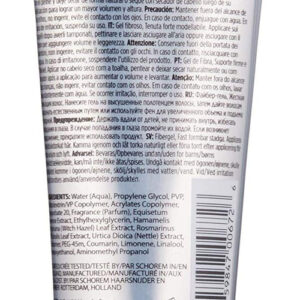 Extracto de hamamelis: Astringente natural. , Extracto de hoja de ortiga: Agrega brillo. , Extracto de romero: Humectante. , Extracto de raíz de cola de caballo: Fortalecimiento. , Mezcla única de copolímeros: Brindan memoria de estilo y fijación óptima. |